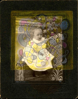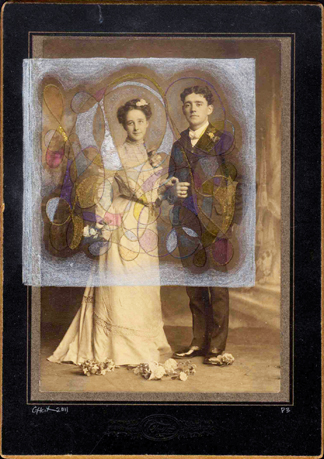 colored + metallic pencil on antique photographs